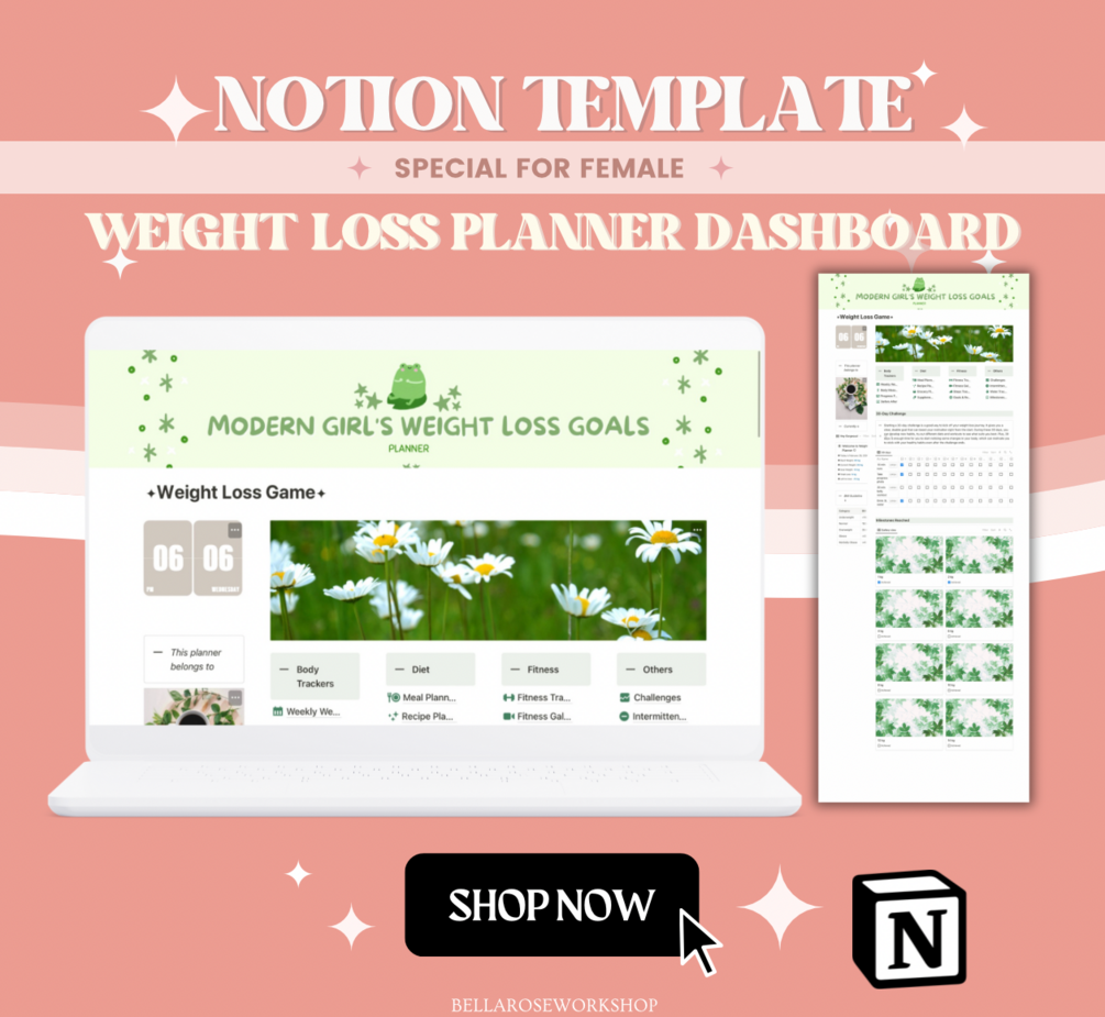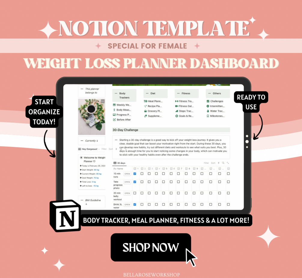 Weight Loss Notion Template, Weight Loss Planner Notion Dashboard